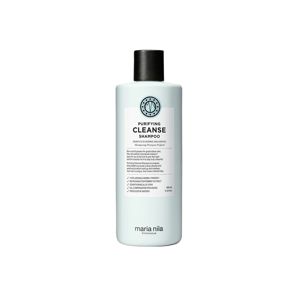 Maria Nila is leading the way for sustainable hair care. The Maria Nila Purifying Cleanse Shampoo is a deep cleansing shampoo that efficiently removes build-up and residues from the hair, making it the perfect base for other treatments. Cooling peppermint extract and aloe vera refresh and condition the hair and scalp.